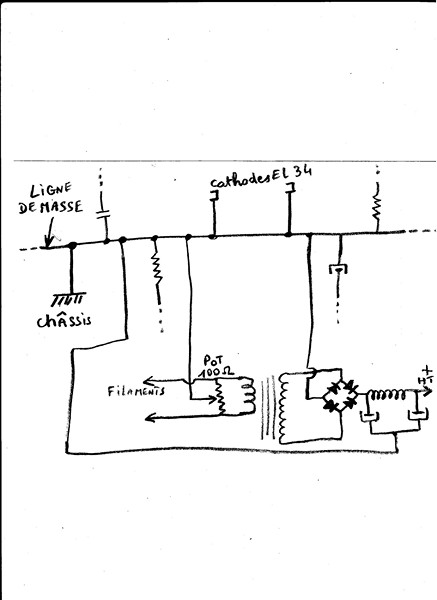 sous ces conditions le courant plaque des deux tubes mesuré au PM du transfo doit etre de l'ordre de 40mA ( 2*20mA)