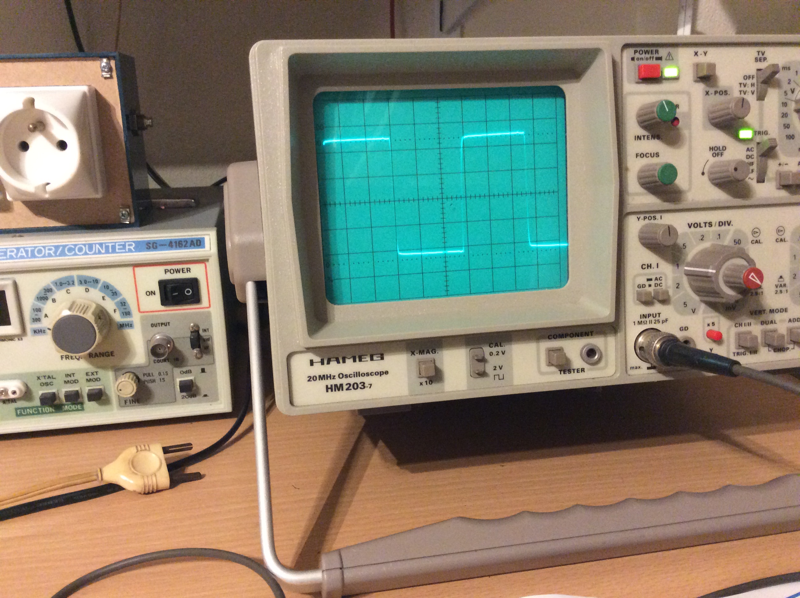 Mesure à l’oscilloscope calibre 2 volts et sonde *10.