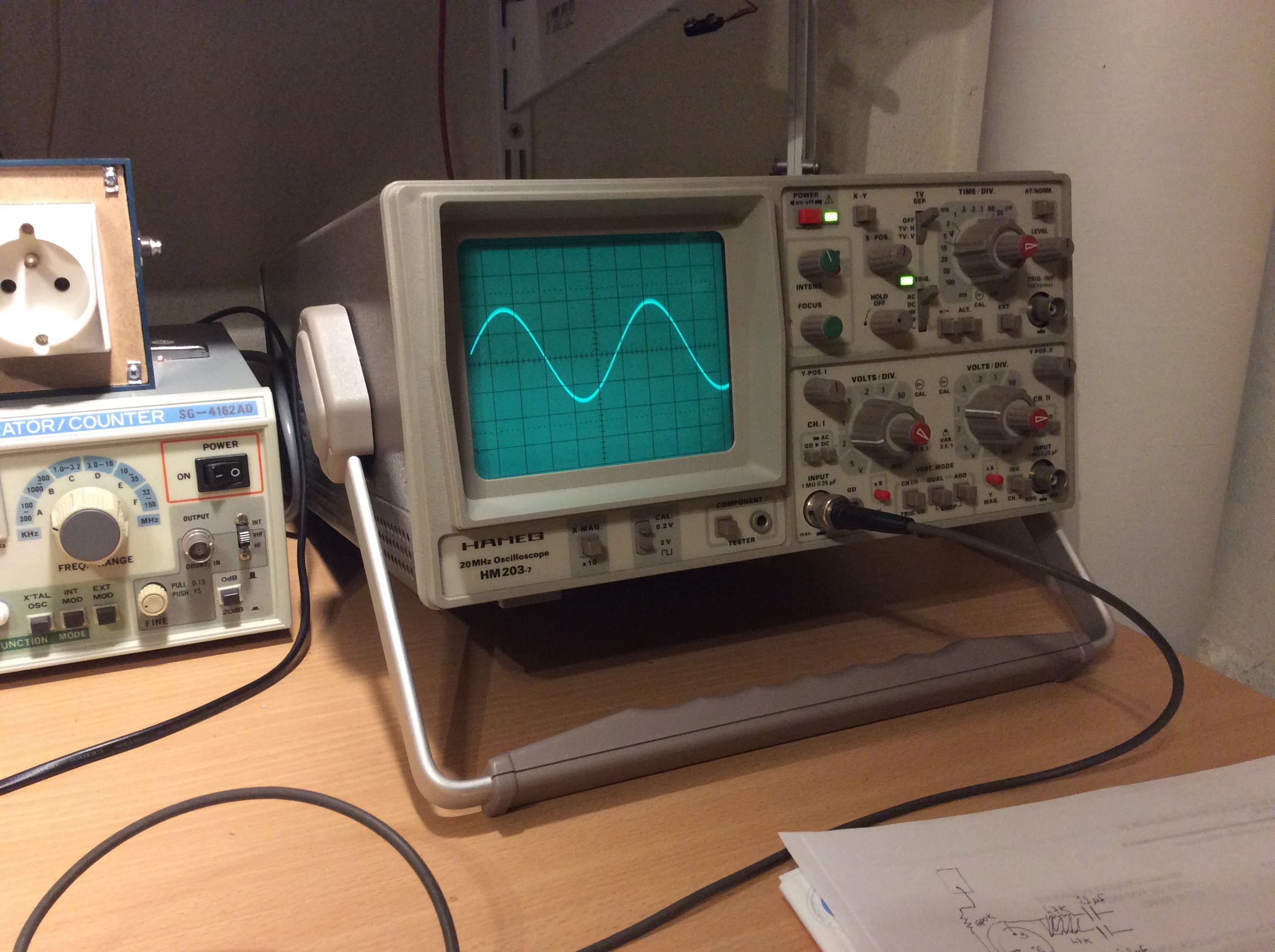 En manoeuvrant le CV, on doit voir l'amplitude de la sinusoïde varier. Quand elle atteint la valeur maxi, on enlève les sondes, on allume un poste calé entre europe1 et france inter et on peaufine afin de voir les segments de l'oeil magique au maximun.