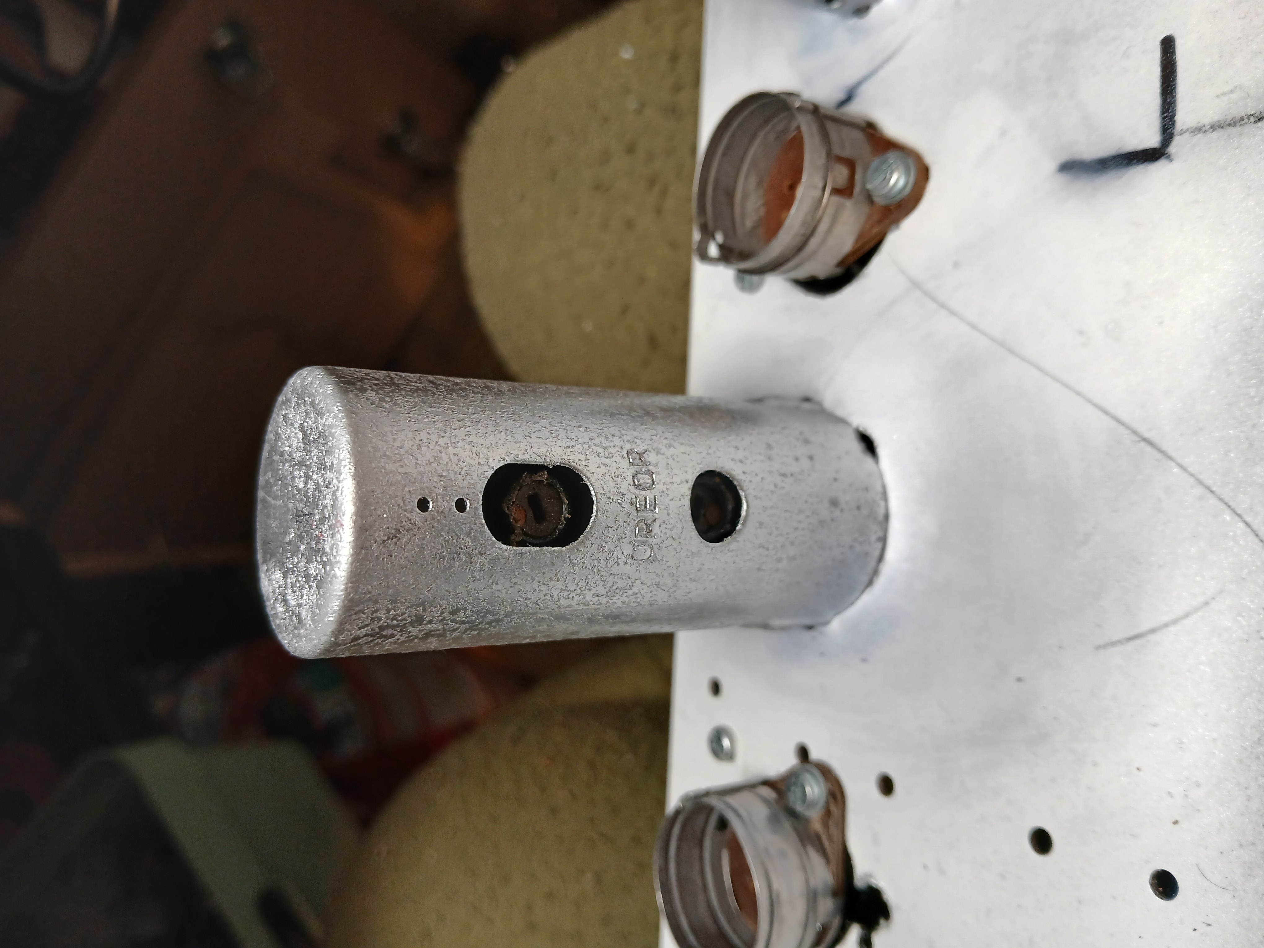 2 trous transformateur MF numéro 2 situé entre le tube MF et le tube de détection AM.