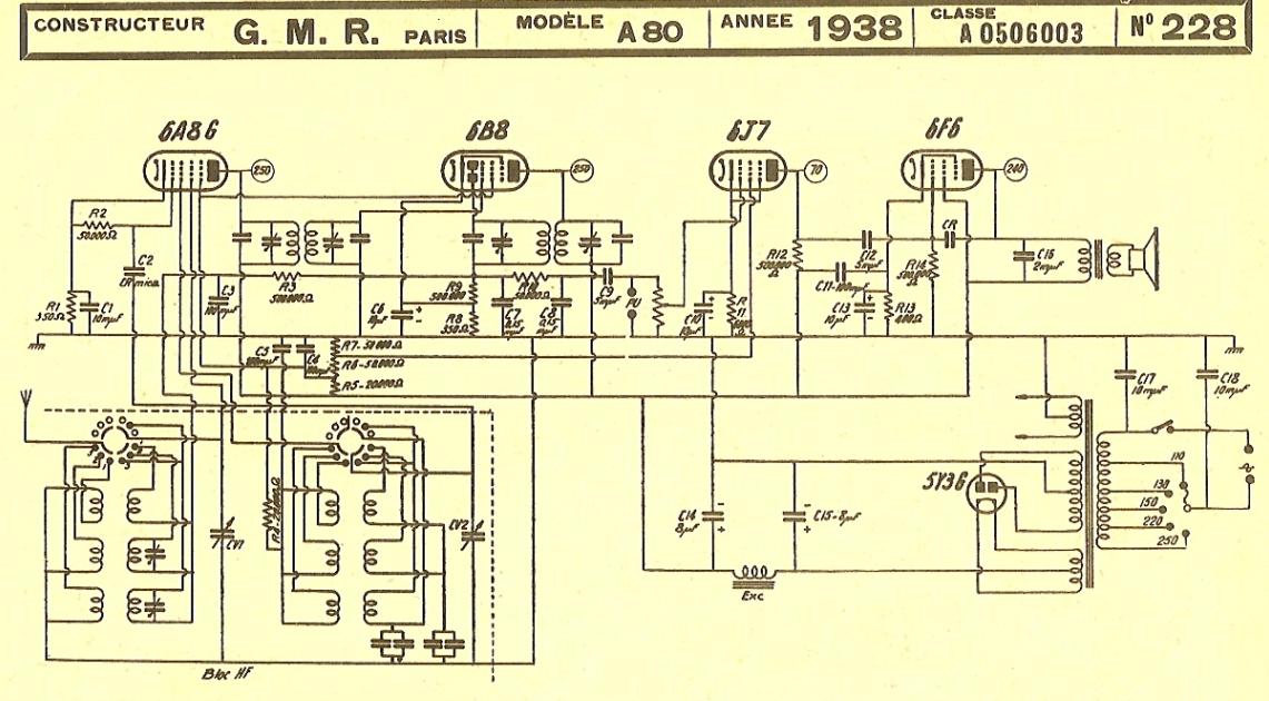 J'ai récupéré le poste de mes Gd parents, un GMR modèle A80 en assez bon état a part le tissu. J'ai bon espoir de lui redonner vie, mais je n'ai pas le schéma.
