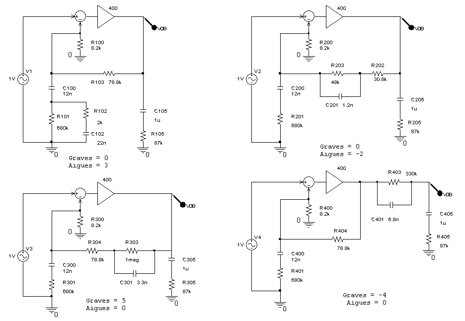 Je pensais placer un "Baxendall passif" entre l'ampli 20 dB et le filtre, mais il ne permettrait que d'augmenter les graves et les aigues que de 6 dB maxi.
