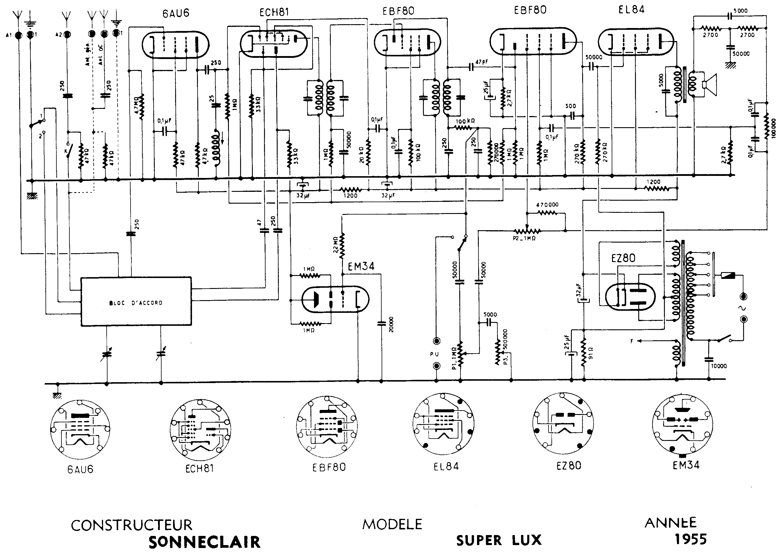- 6AU6 - ECH81 - EBF80 (x2) - EL84 - EZ80 - EM34